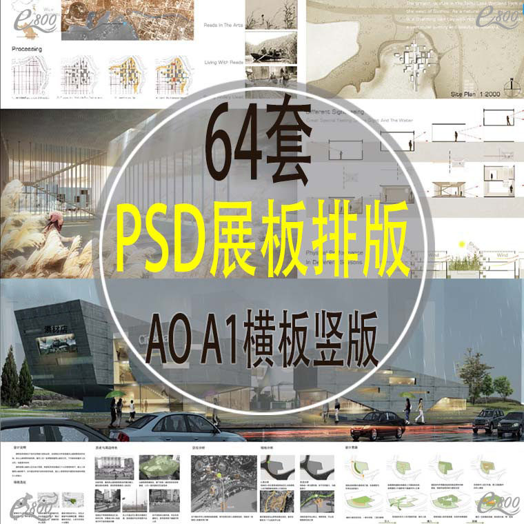 P5 建筑景觀園林設(shè)計展板沛競賽分層PSD模板A0 A1橫板 豎版
