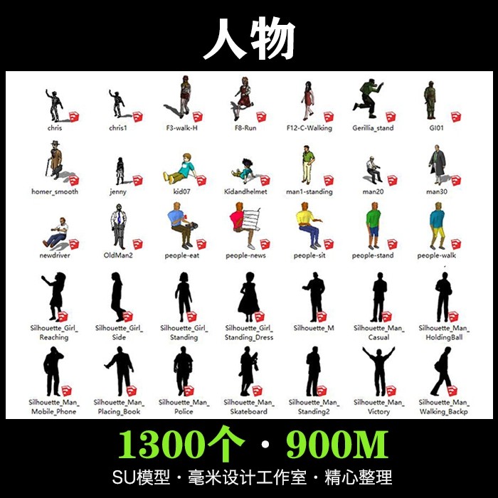 人物SU模型男女老立體兒童抽象黑白sketchup建筑景觀構(gòu)件設(shè)計(jì)素材