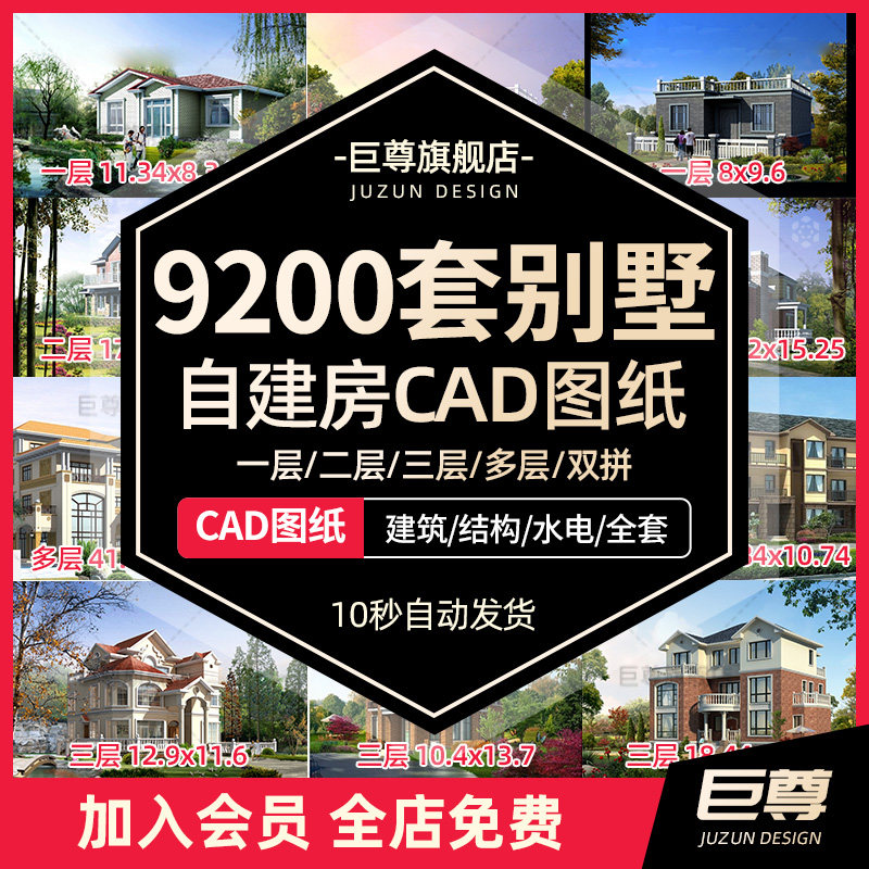 農(nóng)村自建房設(shè)計(jì)圖紙一層二層三層建筑CAD施工鄉(xiāng)村別墅建筑效果圖