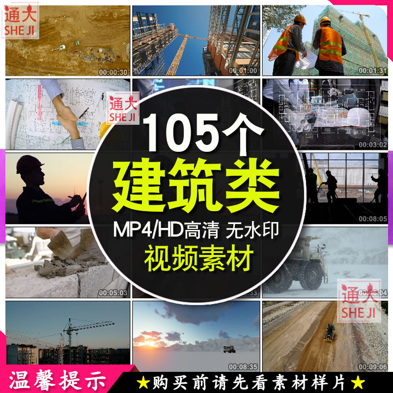 建筑工程工地施工房屋設(shè)計(jì)圖紙工人卡車吊車挖掘機(jī)4k實(shí)拍視頻素材