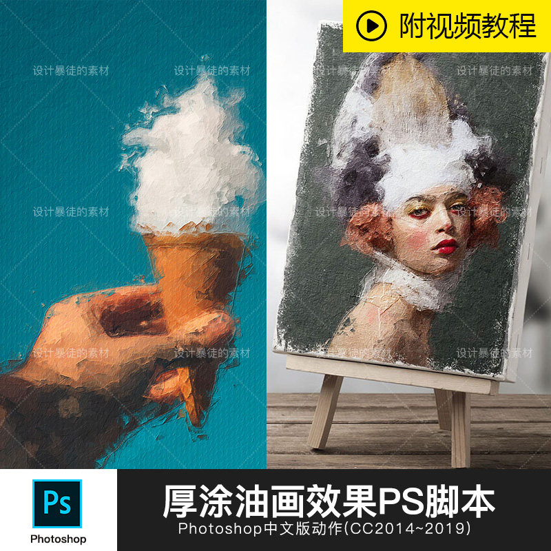 ps厚涂油畫效果腳本插件人像手繪裝飾畫一鍵制作Photoshop動(dòng)作