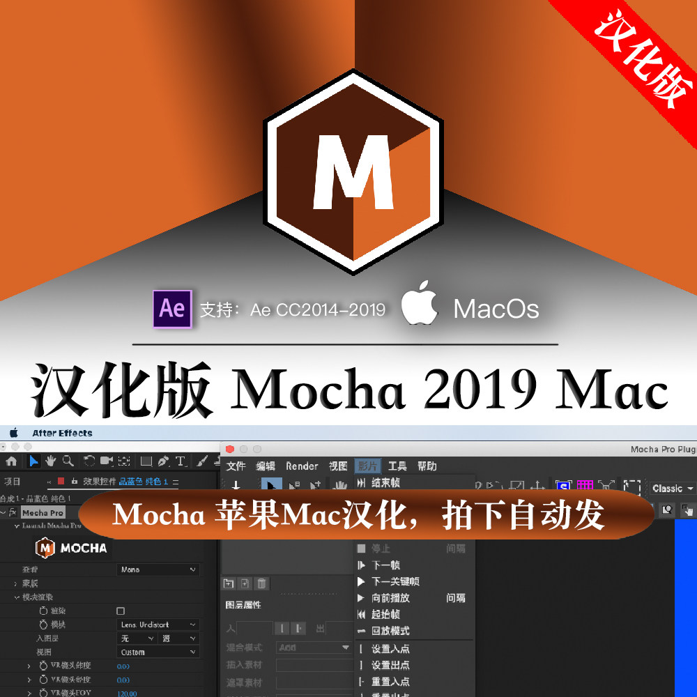 Mac漢化版Mocha軟件Pro視頻跟蹤2019攝像機反求摩卡Ae插件蘋果版