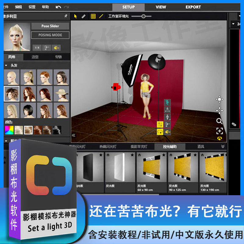 Set a light 3D STUDIO 2 攝影棚布光模擬器中文版電腦軟件送教程