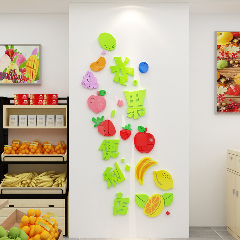 水果店裝飾用品玻璃門貼紙櫥窗貼畫超市店鋪裝修便利店創(chuàng)意3d立體