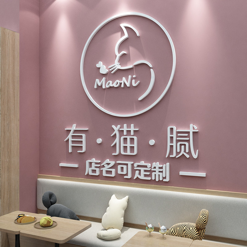 貓咖店墻貼紙畫擼貓咪網(wǎng)紅打卡寵物奶茶店鋪裝飾品玻璃門創(chuàng)意裝修