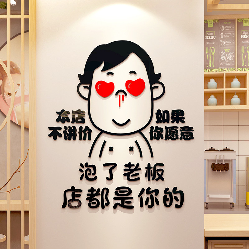 網(wǎng)紅店面3d亞克力立體店鋪裝飾快餐小吃餐館飯店背景墻貼墻壁裝修