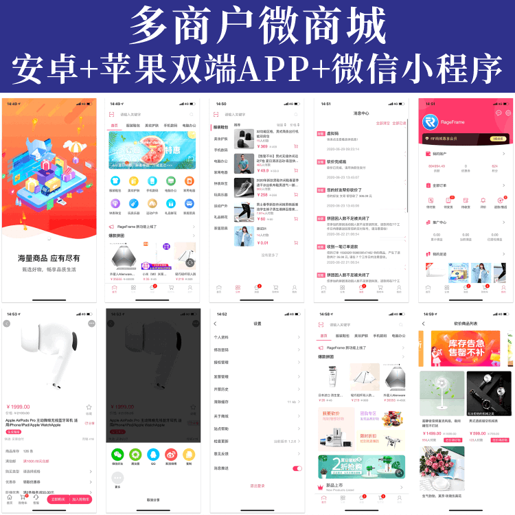微商城APP開發(fā)微信小程序開發(fā)安卓蘋果IOS包上架應(yīng)用商店多商戶版