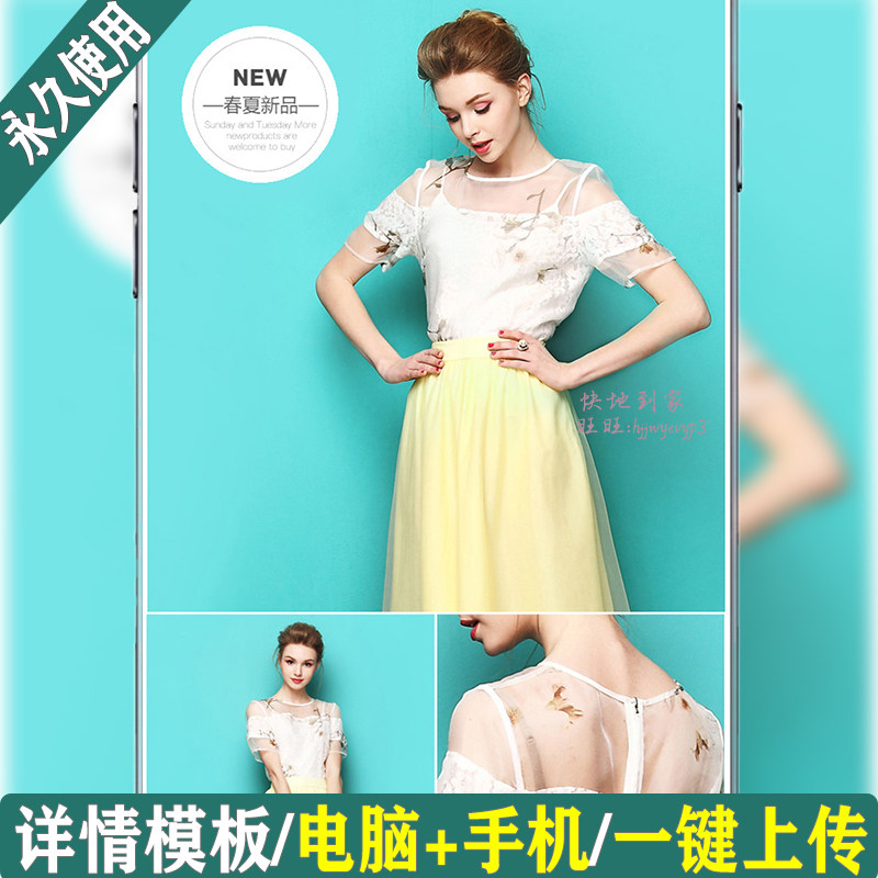 淘寶網(wǎng)店鋪裝修詳情模板手機(jī)寶貝描述頁產(chǎn)品設(shè)計(jì)歐美風(fēng)女裝裙子類