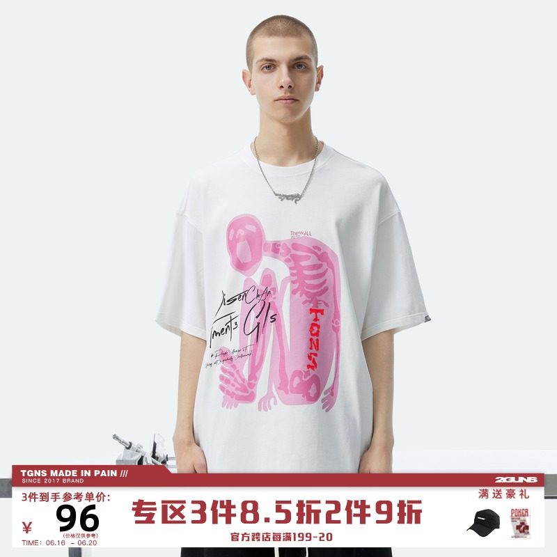 【2GUNS官方網(wǎng)店】潮流寬松個(gè)性粉色logo立體骷髏人物印花短袖T恤