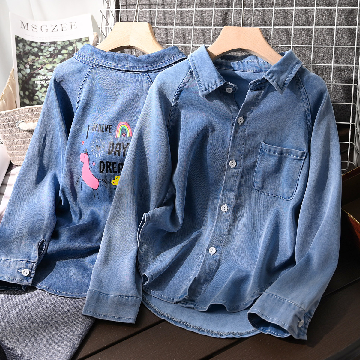 軟糯 兒童萊賽爾軟牛仔襯衫男童女童襯衣 中大童 山東網(wǎng)店 童裝