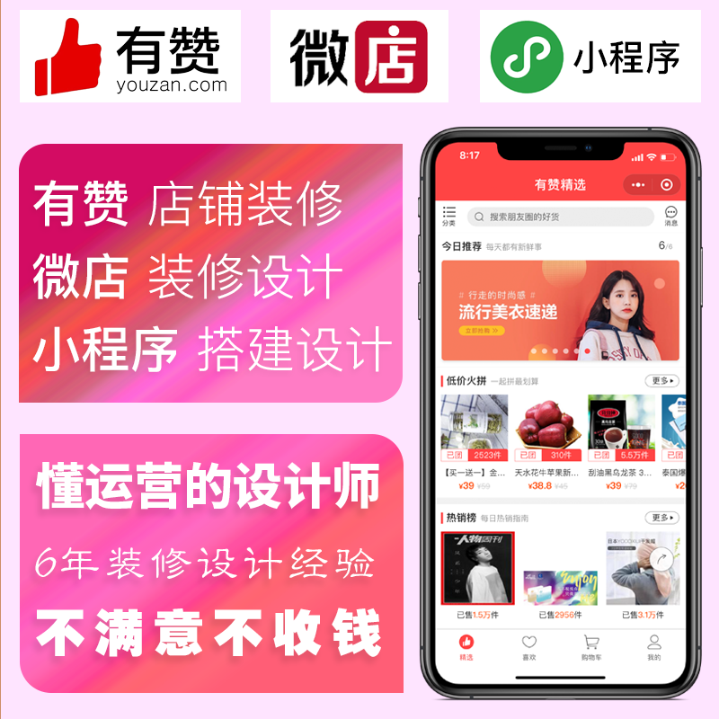 有贊店鋪裝修設(shè)計(jì)小程序微盟商城首頁(yè)面搭建模板定制詳情落地頁(yè)