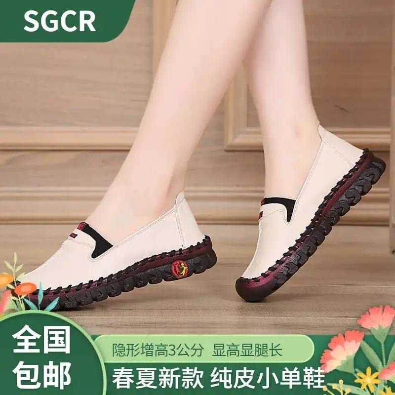 森百鞋碼透氣夏季底鞋媽媽真皮2021女鞋景軟文大手工柏貽春搭女鞋