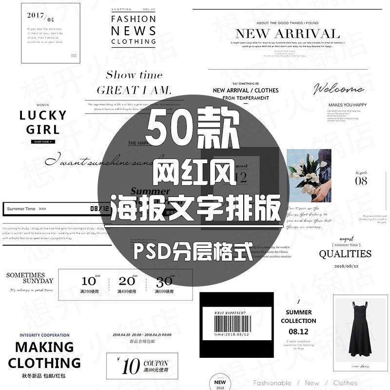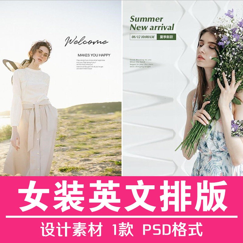 INS風(fēng)攝影女裝海報詳情頁描述英文字體包文案裝飾沛PSD設(shè)計素材