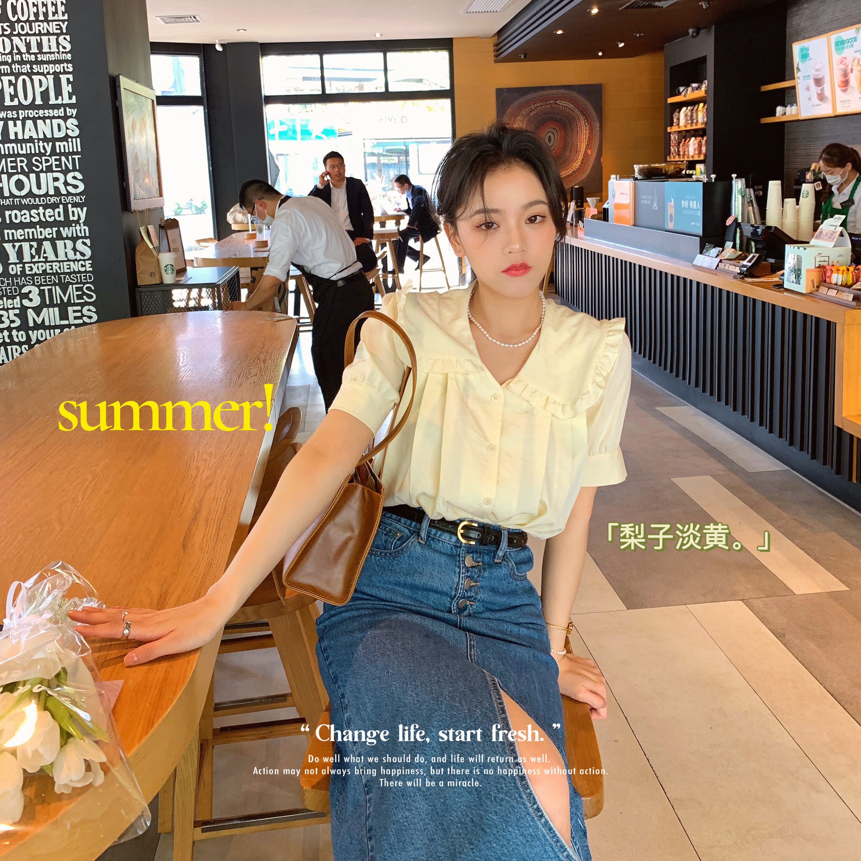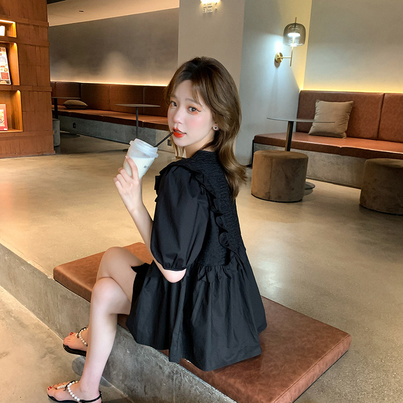 南瓜谷 珍娜韓系~荷葉邊領(lǐng)襯衫女設(shè)計(jì)感小眾百搭復(fù)古上衣C0275