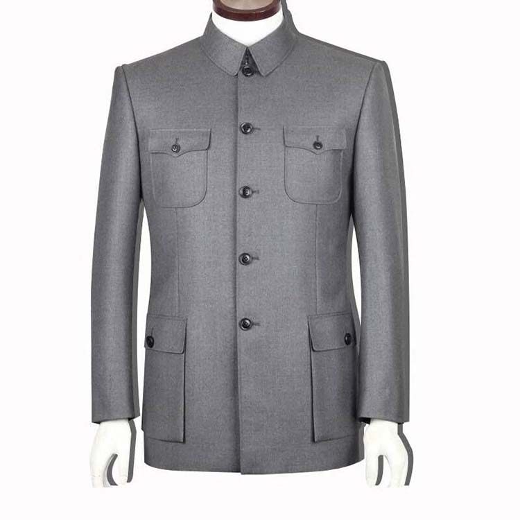 18秋民國(guó)牛皮紙樣中年翻領(lǐng)中山裝灰 DIY男裝打版服裝剪裁圖紙343