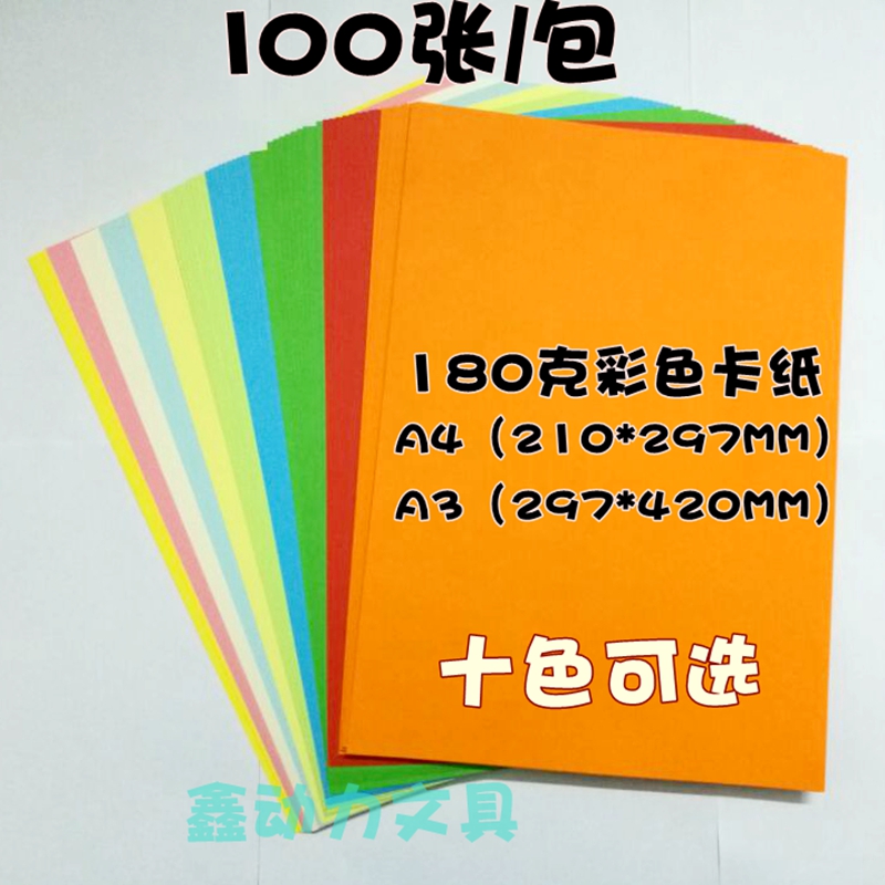 A4/A3彩色卡紙打印彩紙 封面紙 繪圖紙手工折紙180g 硬卡紙100張