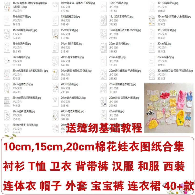 10cm15cm20cm棉花娃娃衣紙樣圖紙裙子漢服衛(wèi)衣背帶褲帽子外套襯衫