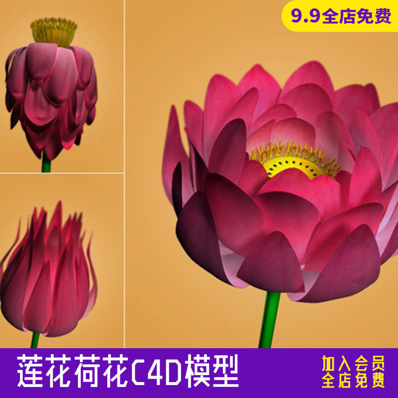 蓮花荷花C4D模型室外景觀設(shè)計植物花卉創(chuàng)意場景3D模型素材CY670