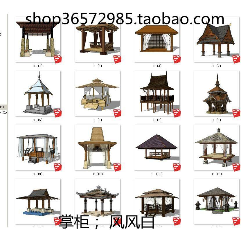 37套 SU模型東南亞亭su模型泰式亭子景觀亭度假區(qū)海濱紗幔亭3D圖