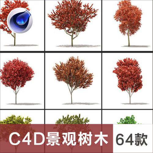 G20-64套景觀樹木C4D模型合集環(huán)境園林藝術設計3D模型素材