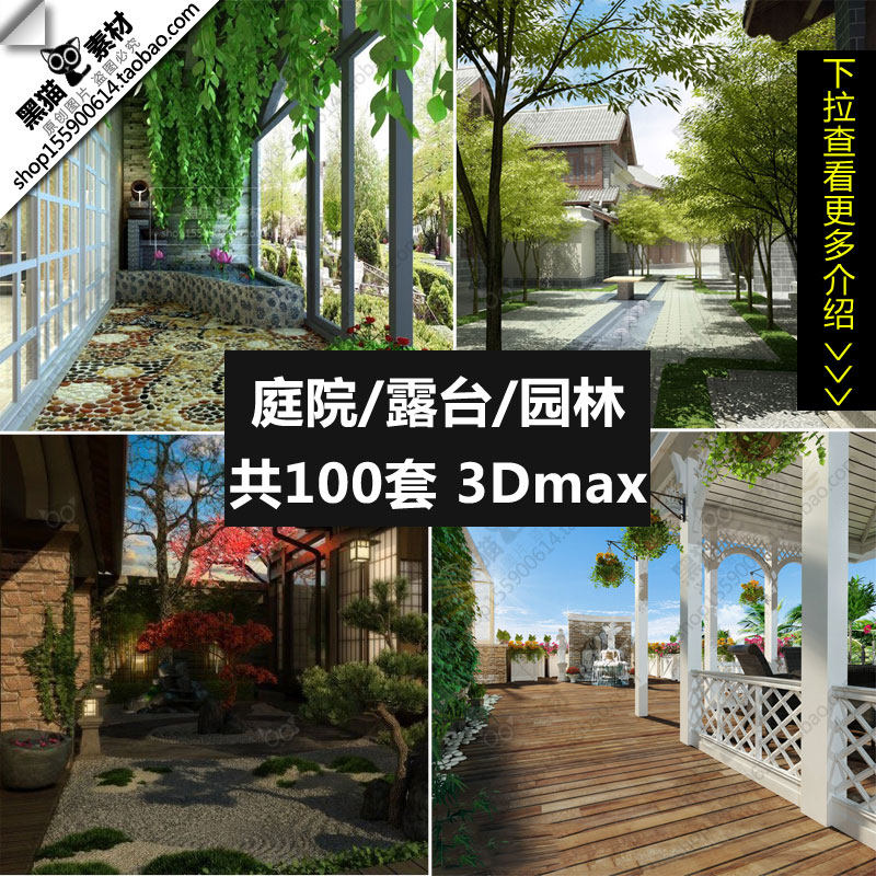 枯山水庭院3D源文件/陽臺露臺假山園林景觀打包3Dmax模型設計素材