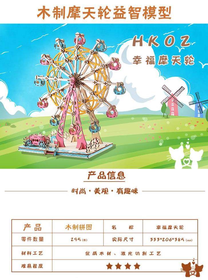 木制小型擺件3d模型景觀送女友玩具游樂場模型場景摩天輪大型拼裝