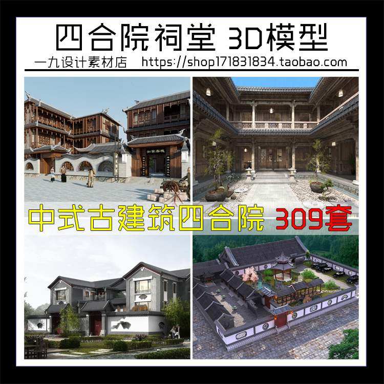 北京四合院祠堂3d模型江南新中式古典徽派建筑庭院景觀3dmax模型