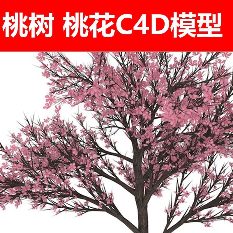 植物樹木樹枝景觀桃樹桃花綠葉花卉材質(zhì)貼圖C4D3D模型三維素材