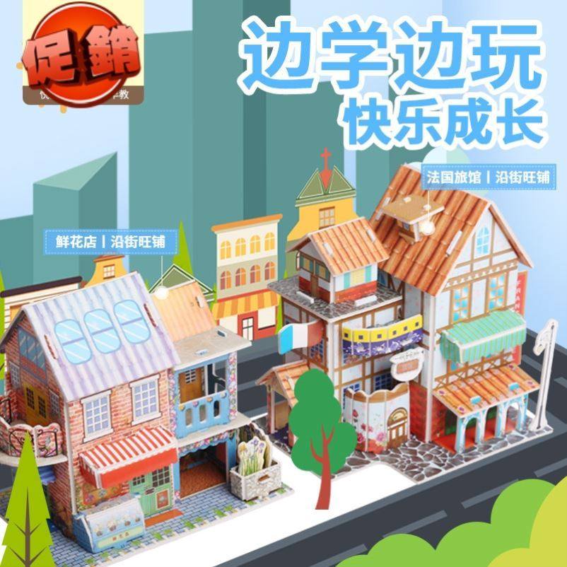 親子互動簡單迷你景觀六一城市新款立體拼圖玩具3d模型房子拼裝