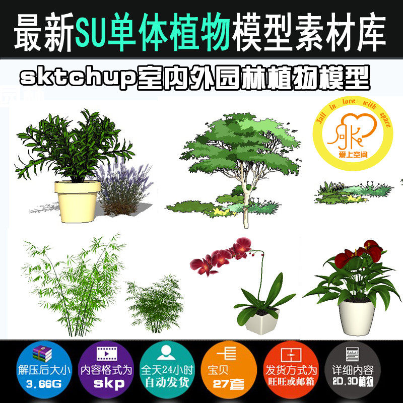 #草圖大師SU園林景觀人植物手繪平面sketchup組件模型庫2D/3D素材