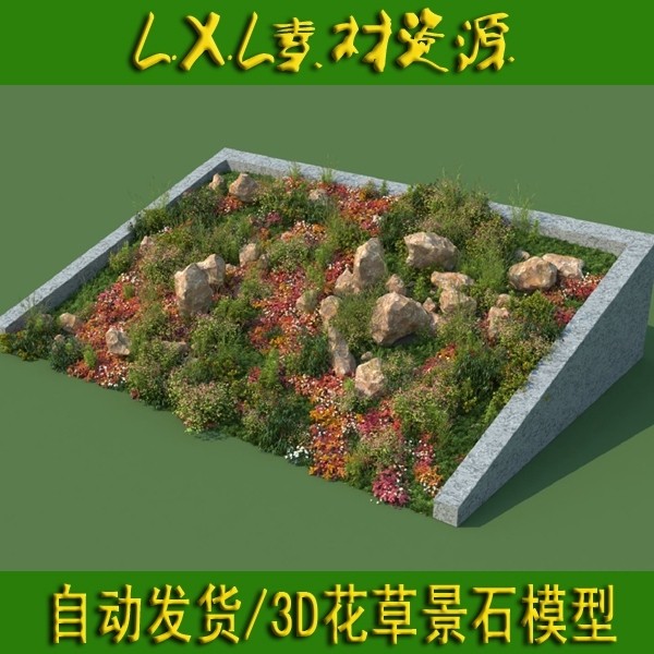 3D植物花草石頭假山景石模型素材庫 3Dmax模型素材 室外園林景觀