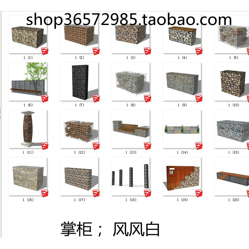 20套 SU模型石籠sketchup SU模型鐵絲網(wǎng)石頭籠子景觀園林3D圖紙