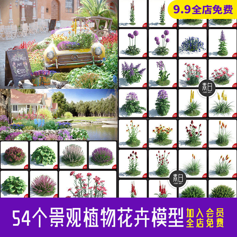 54個3D樹木花朵植物盆栽景觀植物花卉模型C4D MAX格式素材MX120