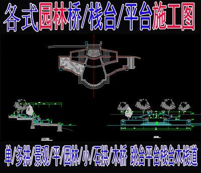 單/多拱/景觀/平/園林/小/石拱/木橋 跳/平/棧臺(tái)木棧道CAD施工圖