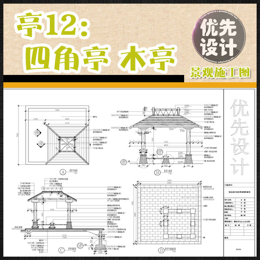 景觀施工圖 四角木亭 帶結(jié)構(gòu)休憩亭園建設(shè)計(jì)園林景觀節(jié)點(diǎn)圖亭12