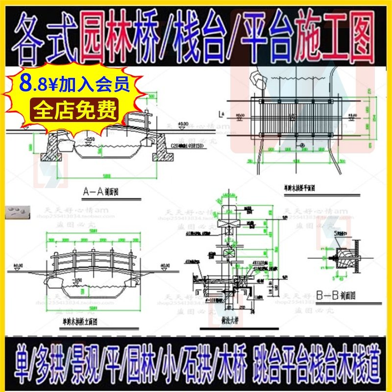 石拱/木橋 單/多拱/景觀/平/園林/小 跳/平/棧臺(tái)木棧道CAD施工圖