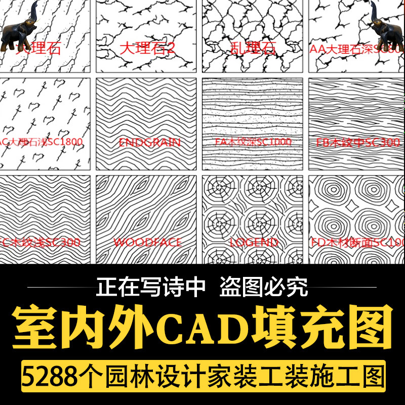 室內(nèi)外園林景觀設(shè)計(jì)家裝工裝CAD填充圖案施工圖石材地面圖庫(kù) Z764