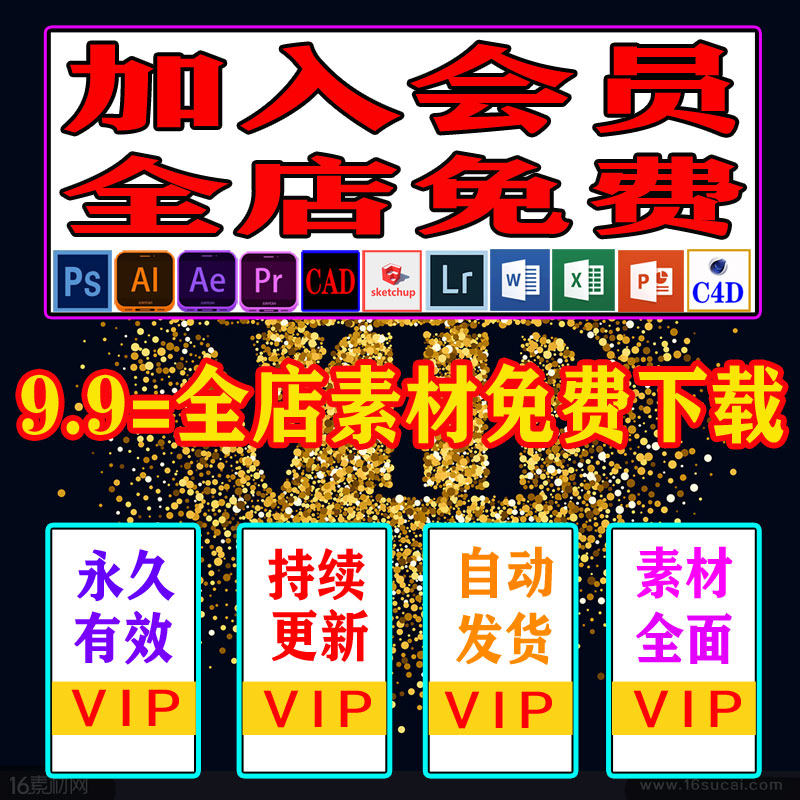 會員VIP全店免費下載PPT模板PSD源文件AI海報視頻PNG素材幻燈片UI