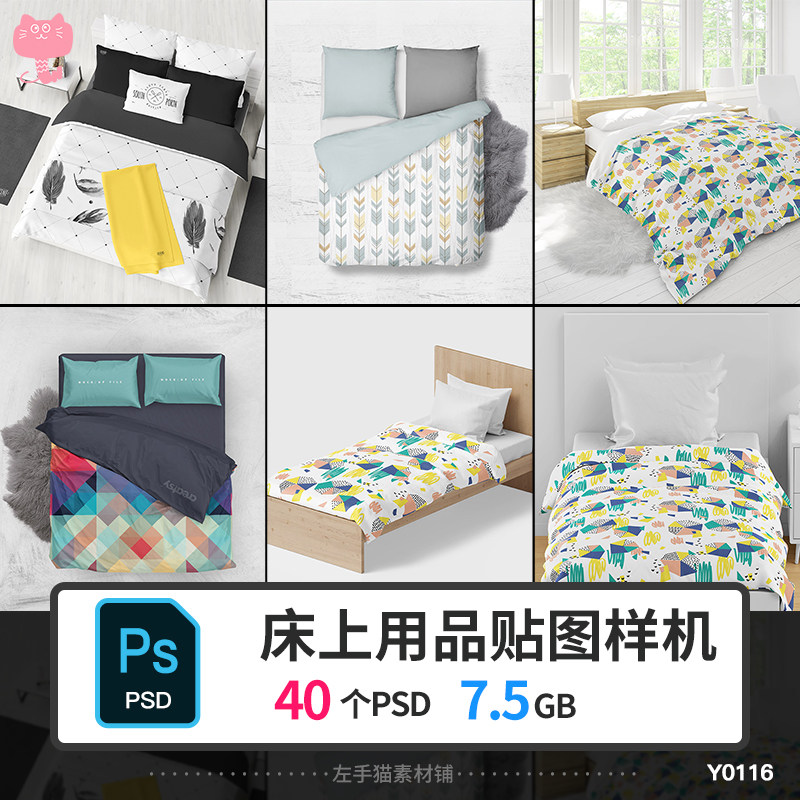 床上用品布藝展示床單被褥枕頭PS印花圖案效果圖被子貼圖樣機PSD