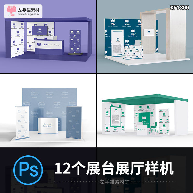 12個企業(yè)宣傳招聘產(chǎn)品展示展廳布置展臺效果圖樣機PSD貼圖素材