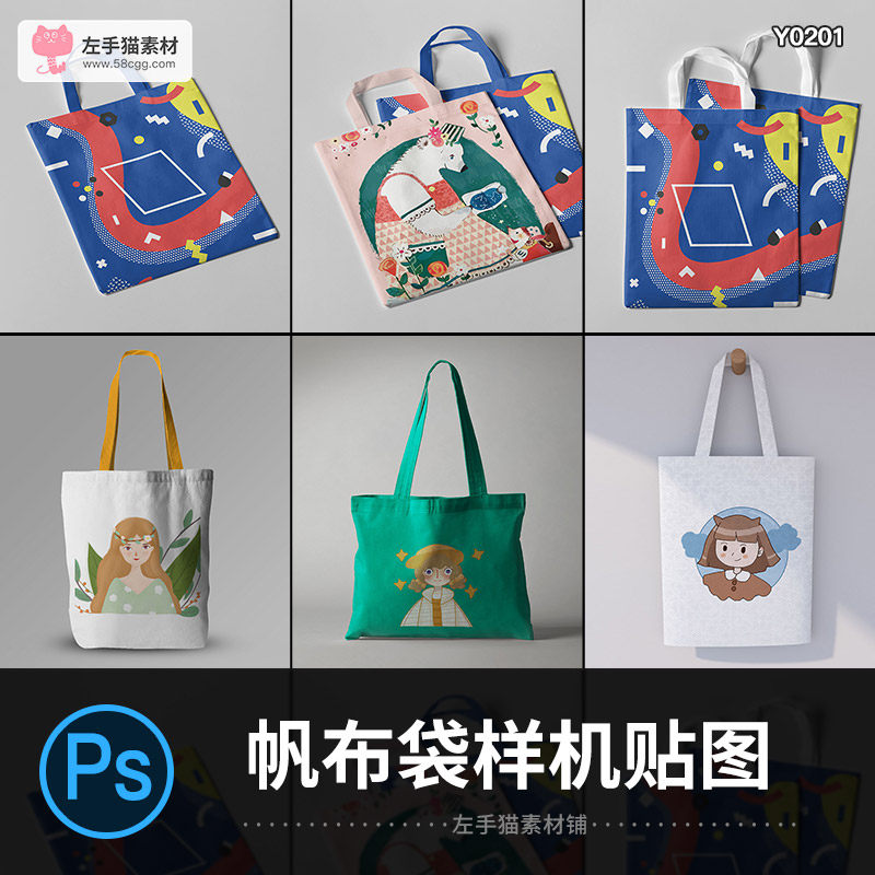 文創(chuàng)品牌文化帆布袋手提袋樣機效果展示PSD分層智能貼圖素材