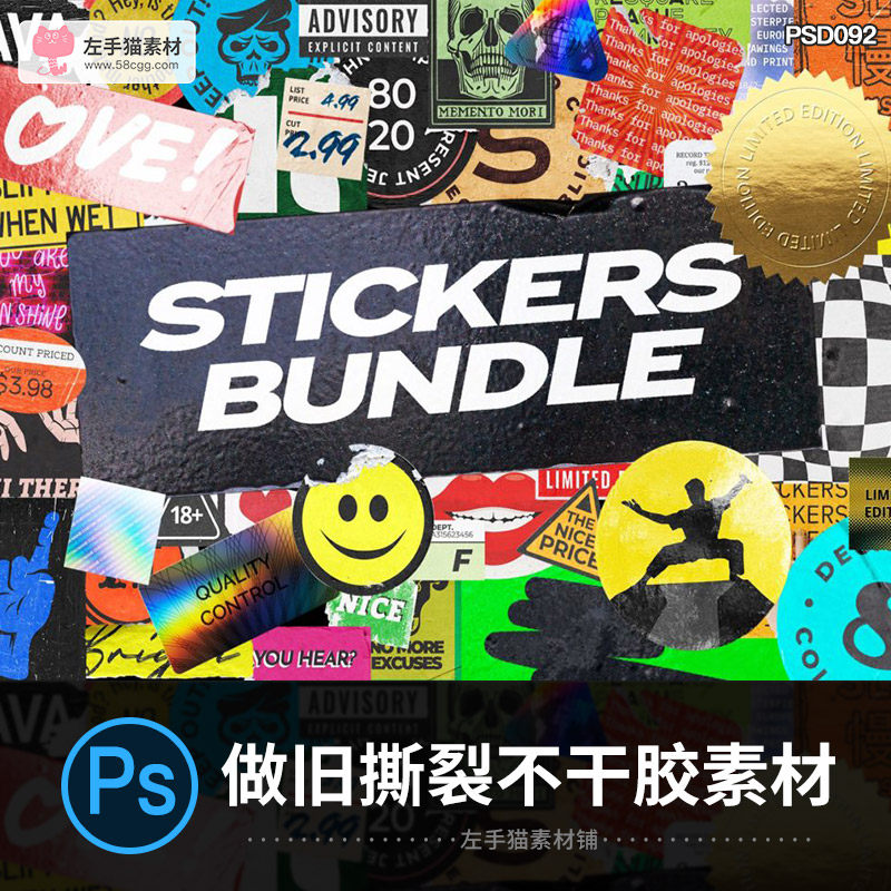 140款高級潮流做舊撕裂不干膠褶皺標簽徽標貼紙樣機PSD設(shè)計素材