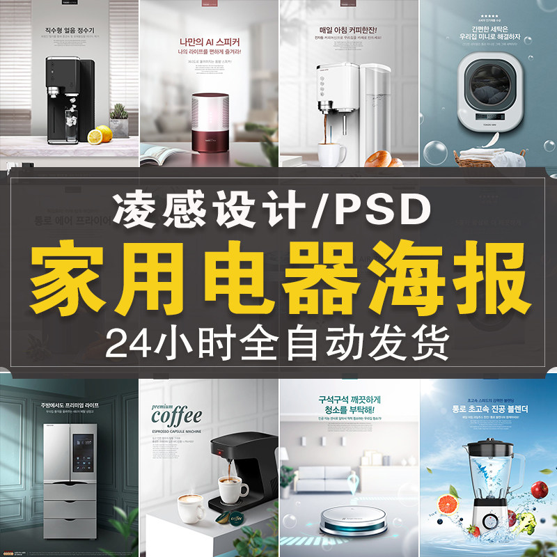 凌感設(shè)計精選新款家電日用電器海報素材冰箱洗衣機榨汁機PSD模板