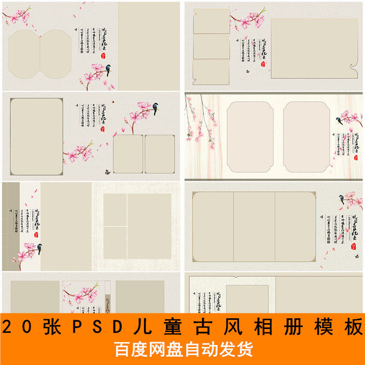 新影樓兒童古裝漢服照設(shè)計素材中國風(fēng)寶寶照相冊沛PSD模板