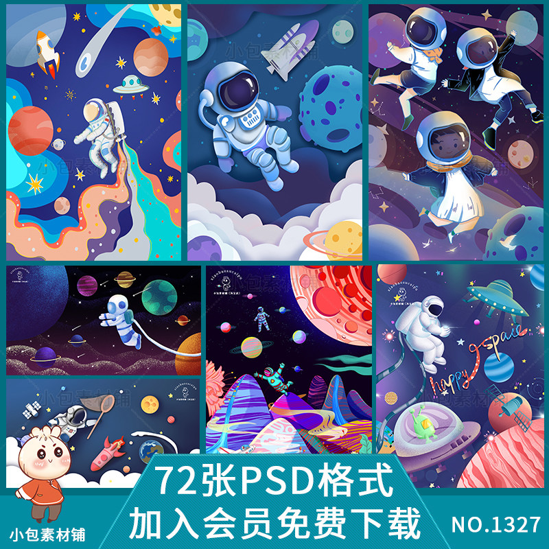 宇宙星球太空航天員火科幻男孩兒童插畫裝飾圖海報PSD設(shè)計素材