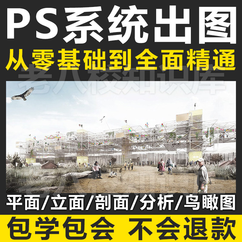 PS系統(tǒng)出圖視頻教程建筑景觀平立剖面彩總表現(xiàn)渲染鳥瞰PSD效果圖分析