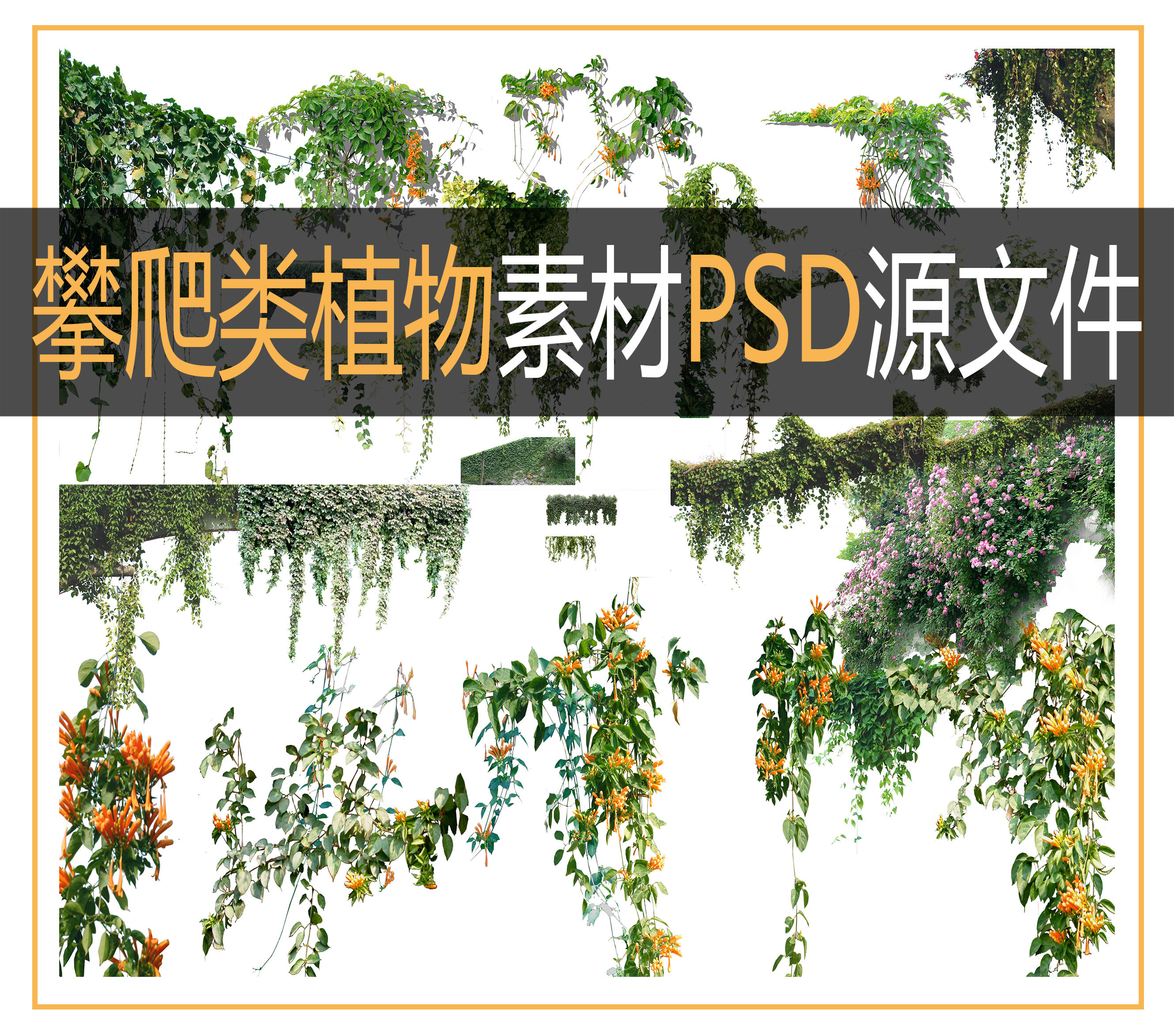 效果圖攀爬類藤蔓植物垂直綠化爬山虎表現(xiàn)圖景觀PSD素材ps源文32
