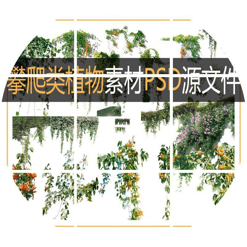 景觀攀爬類藤蔓植物垂直綠化爬山虎表現(xiàn)圖效果圖PSD素材ps源文件