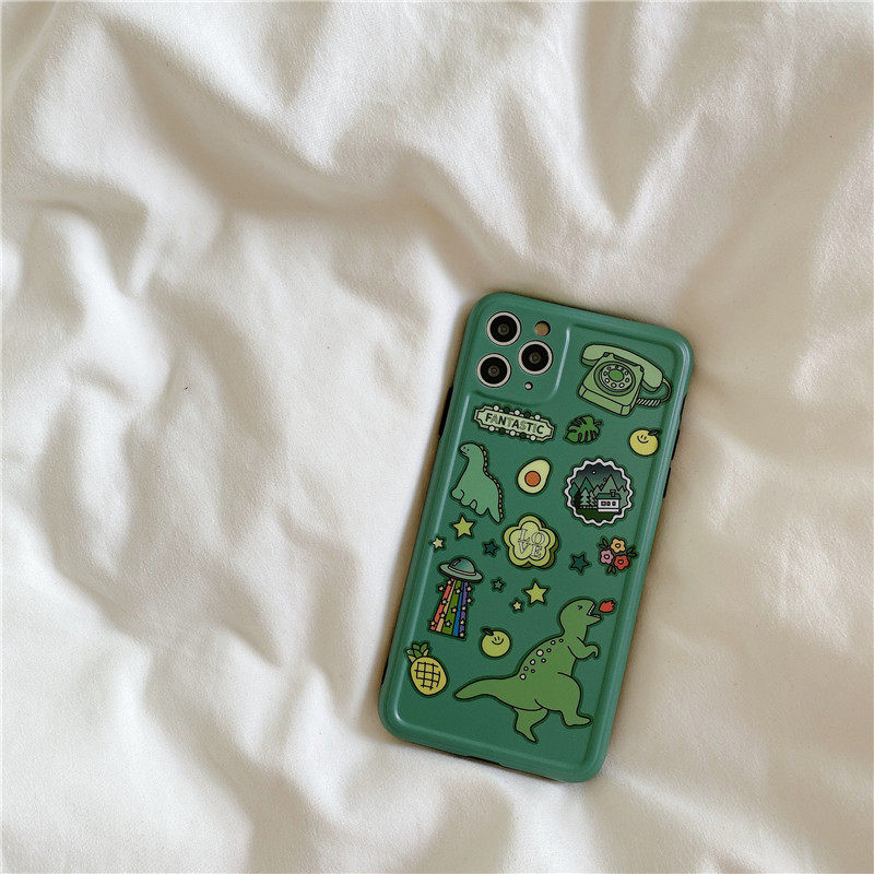 hinlucky 日韓卡通可愛(ài)恐龍貼圖適用于11ProMax蘋果x手機(jī)殼xr/xsmax/iphoneSE/7p男女8plus全包防摔i11保護(hù)套