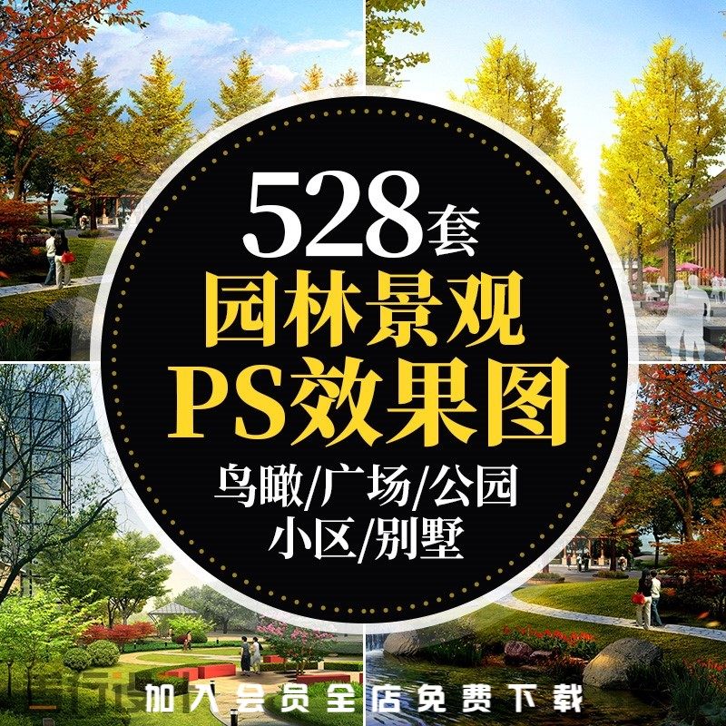 園林景觀PSD效果圖PS分層后期素材鳥瞰圖透視圖建筑廣場(chǎng)公園小區(qū)
